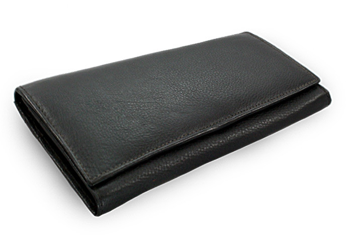 Čierna dámska listová kožená peňaženka s poklopom 511-2018-60