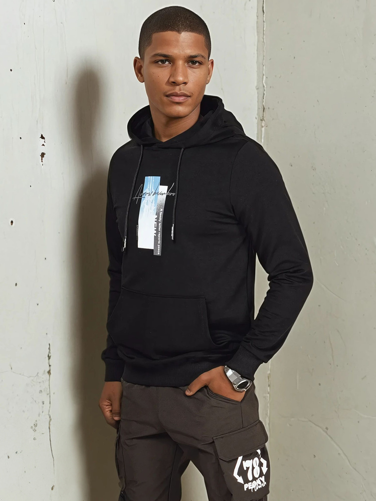 Úžasná pánska mikina s kapucňou. Vyrobené z mäkkého a na dotyk príjemného materiálu. Nasaďte si cez hlavu. Dvojvrstvová kapucňa nastaviteľná pomocou šnúrky. Pretlač. Klokanové vrecko. Spodná časť a rukávy ukončené rebrovaním. Pohodlný strih. Ideálne na každodenné použitie.
