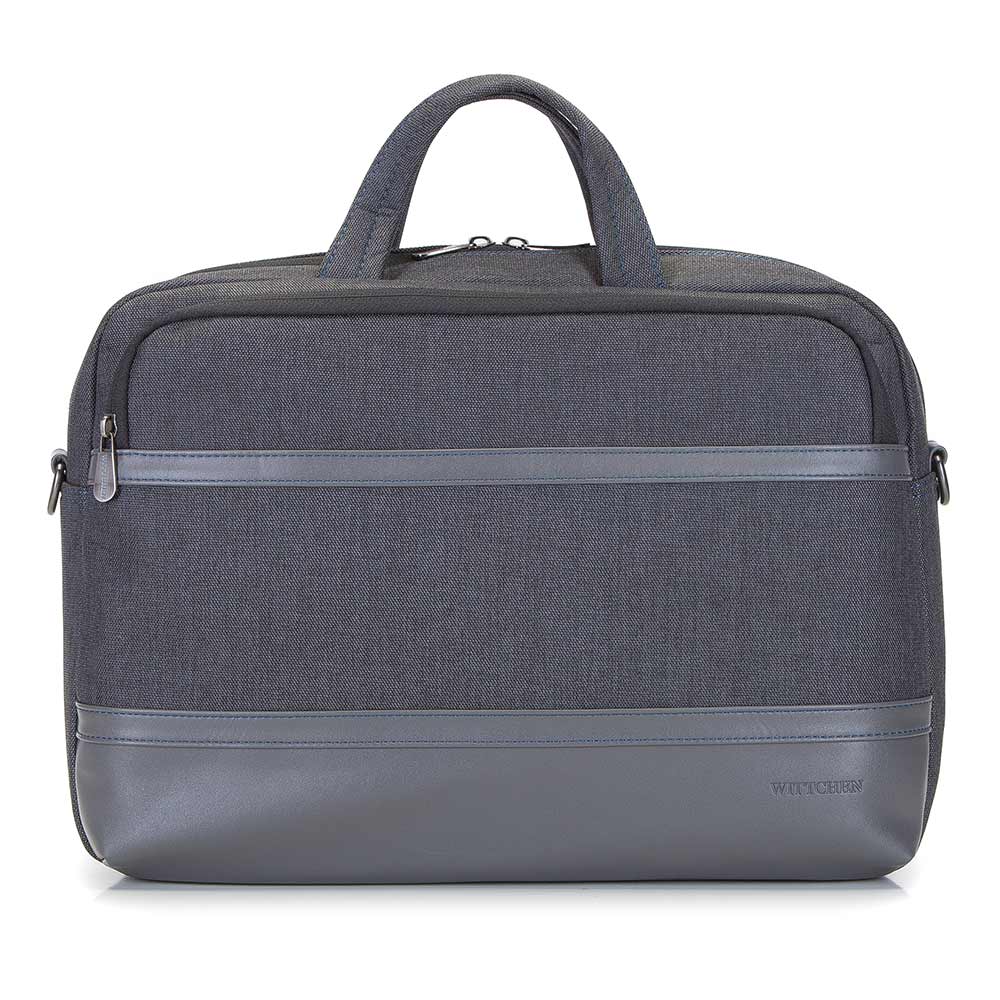 Veľká taška na notebook s elegantnou povrchovou úpravou z ekologickej kože doplní váš biznis styling. Je to nenahraditeľný pánsky doplnok do práce, no nielen do nej. Môžete ju pohodlne nosiť v ruke vďaka hrubým rúčkam alebo zavesiť cez rameno na pripevnený popruh. Na prednej a zadnej strane má dve praktické vrecká na zips. Jedno z nich má ukrytú prídavnú rukoväť – môžete ju pripevniť na rukoväť kufra. Vo vnútri má samostatné, mäkko polstrované vrecko na 15,6-palcový alebo menší notebook a dve vrecká. Okrem výpočtovej techniky sa do vnútra zmestia aj dokumenty a šanóny vo formáte A4. Táto pánska taška na notebook s panelom z ekokože má klasický jednoduchý strih, ktorý je ideálny na každodenné nosenie.Náš tip: Dĺžku opasku si môžete prispôsobiť svojej výške.